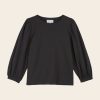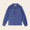– Encolure ronde, poignets et volants sur les emmanchures soulignés par un point de grébiche