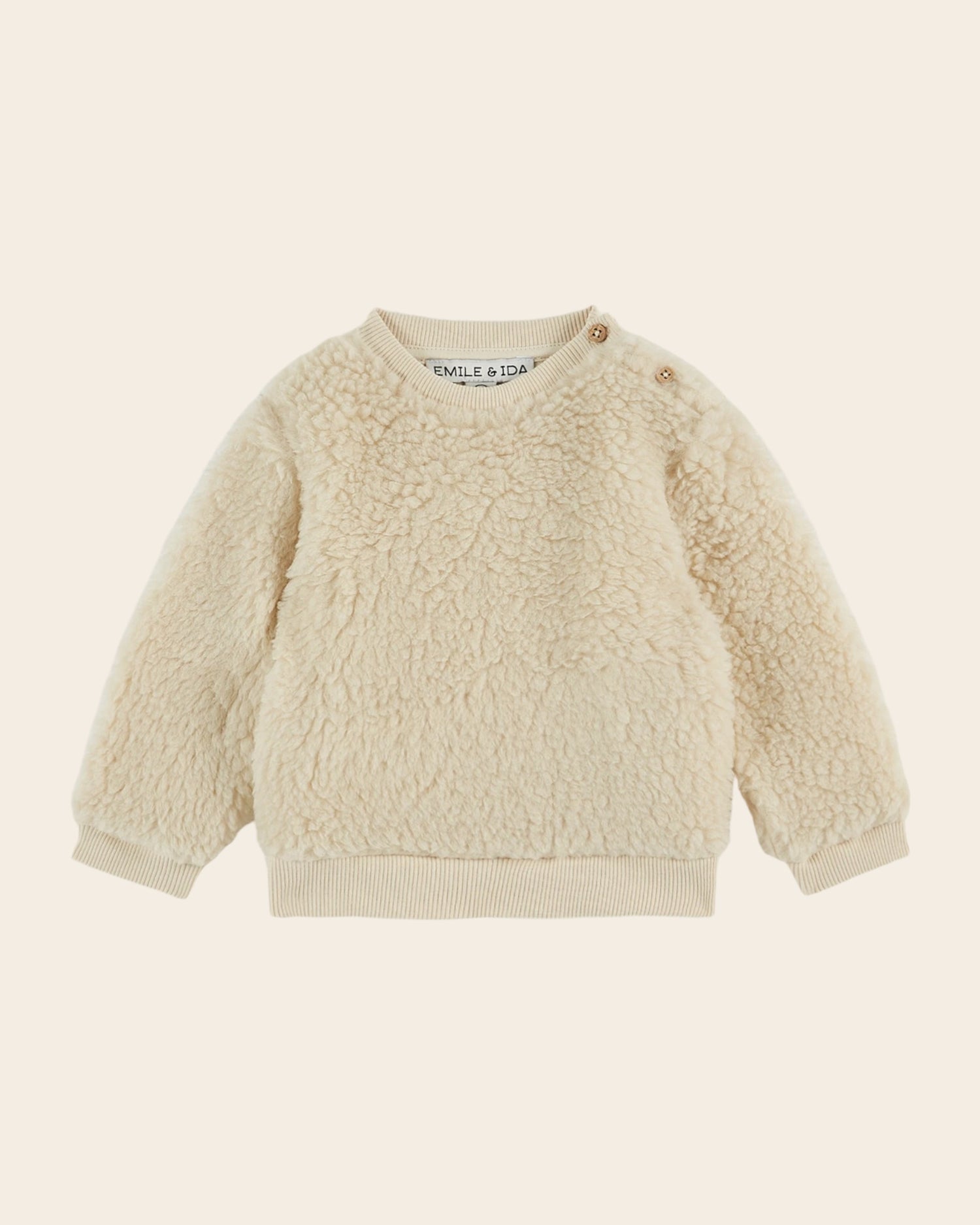 Sweatshirt moumoute en fourrure synthétique écru. Ce sweat transforme n’importe quel bébé en adorable agneau.