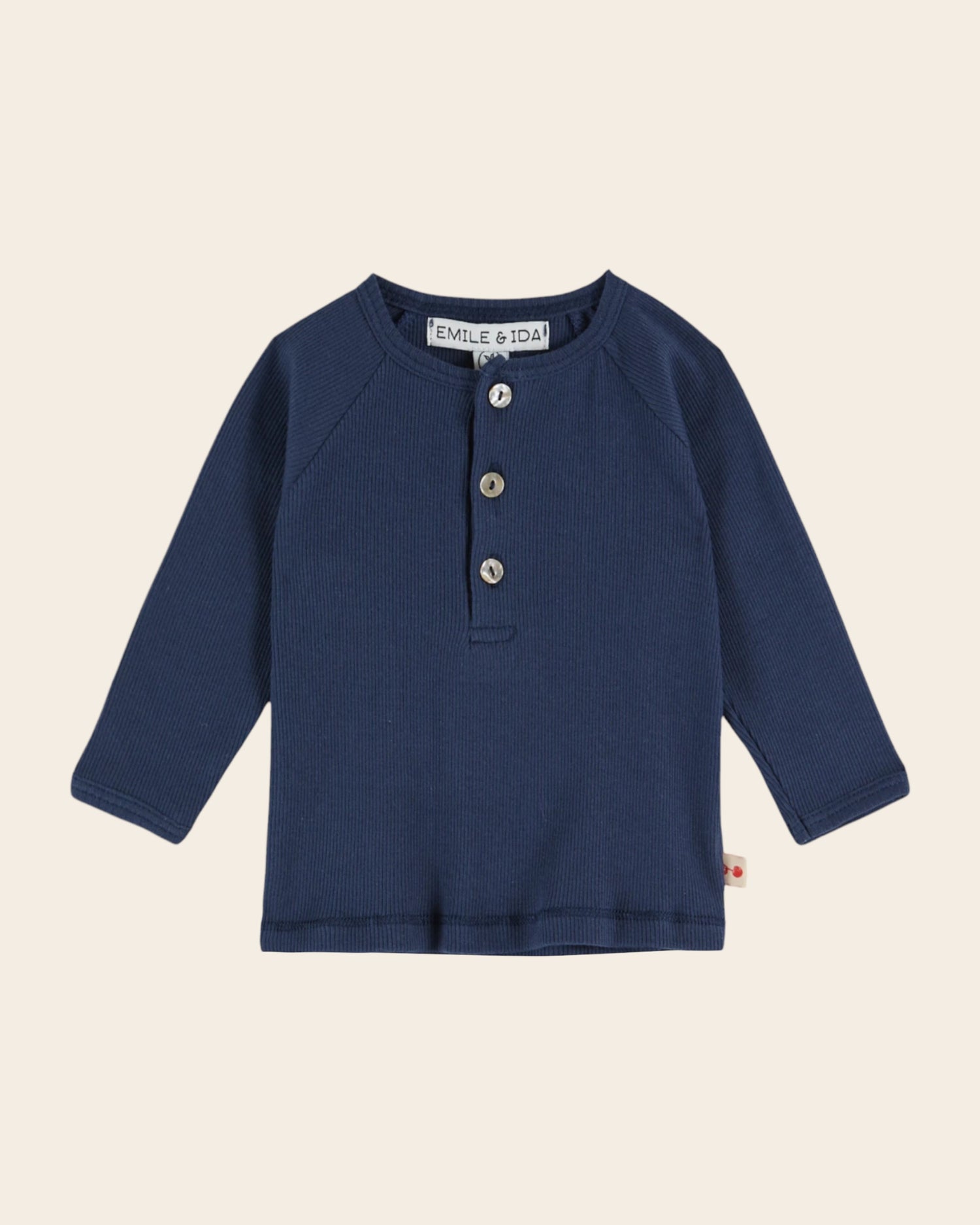 Tee-shirt tunisien en côtes de coton biologique bleu nuit.