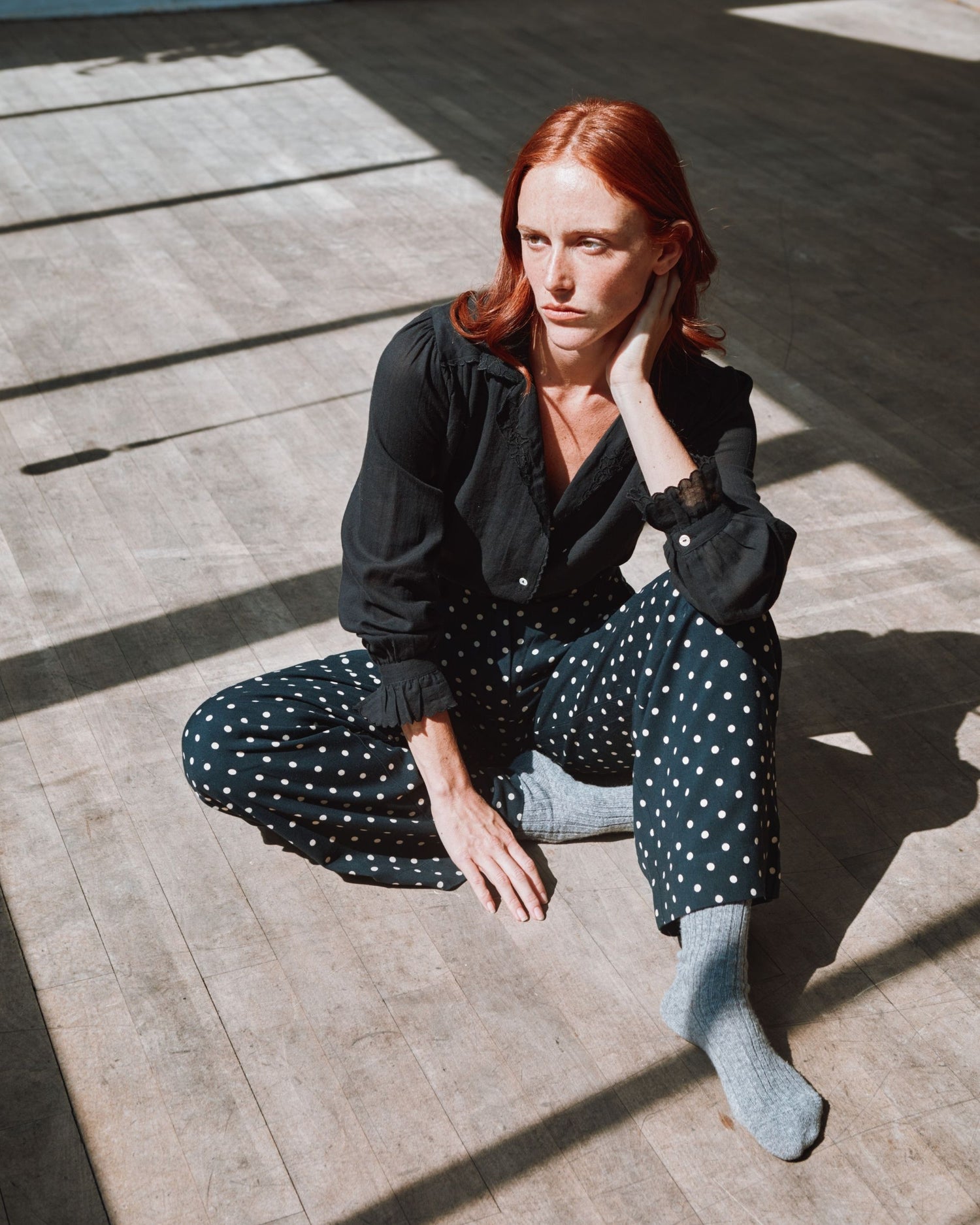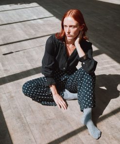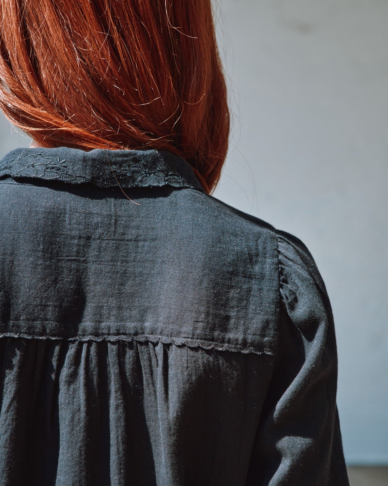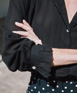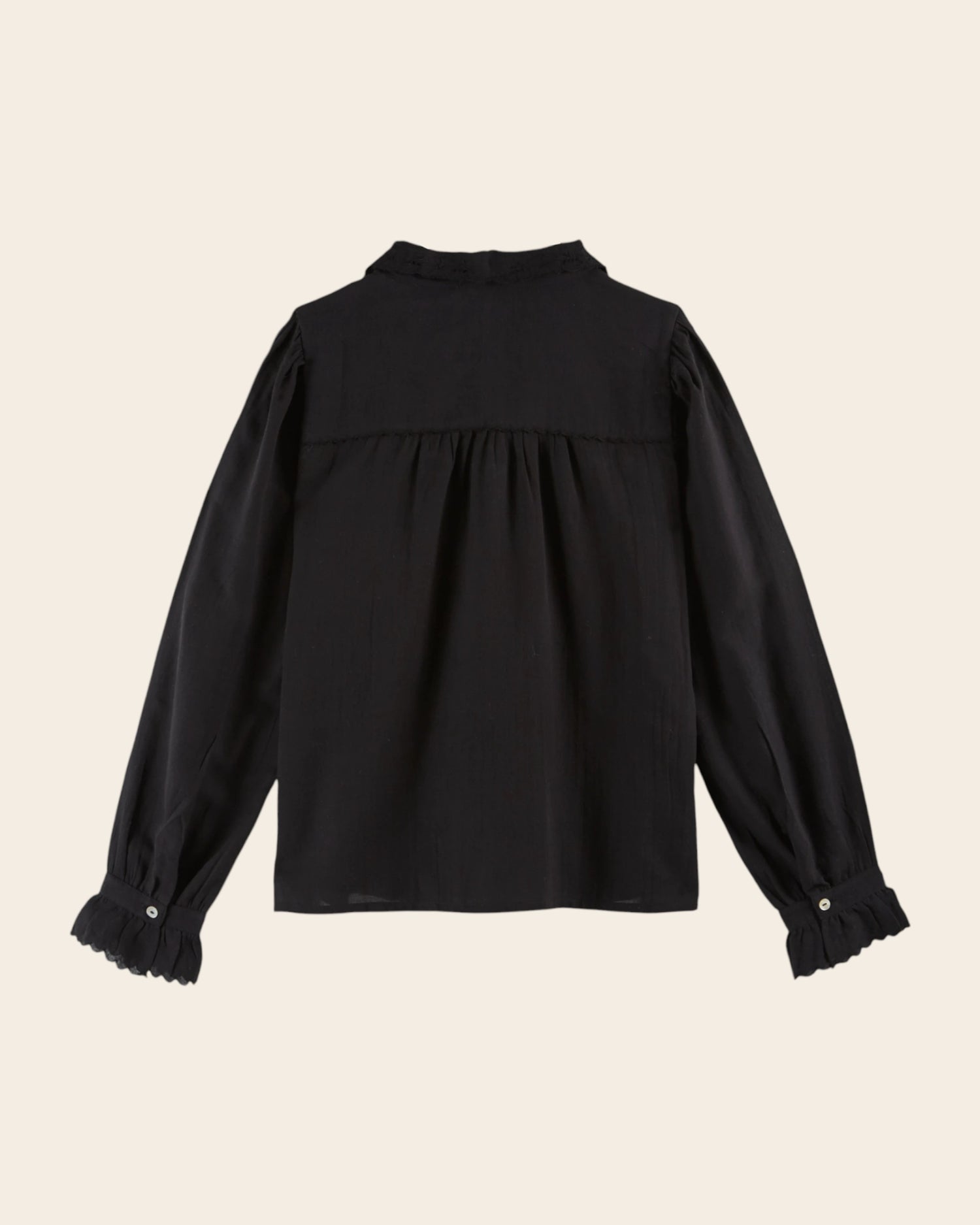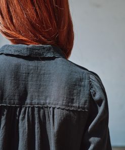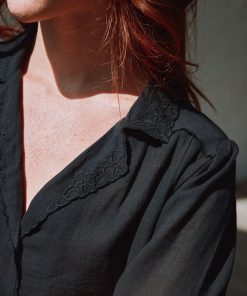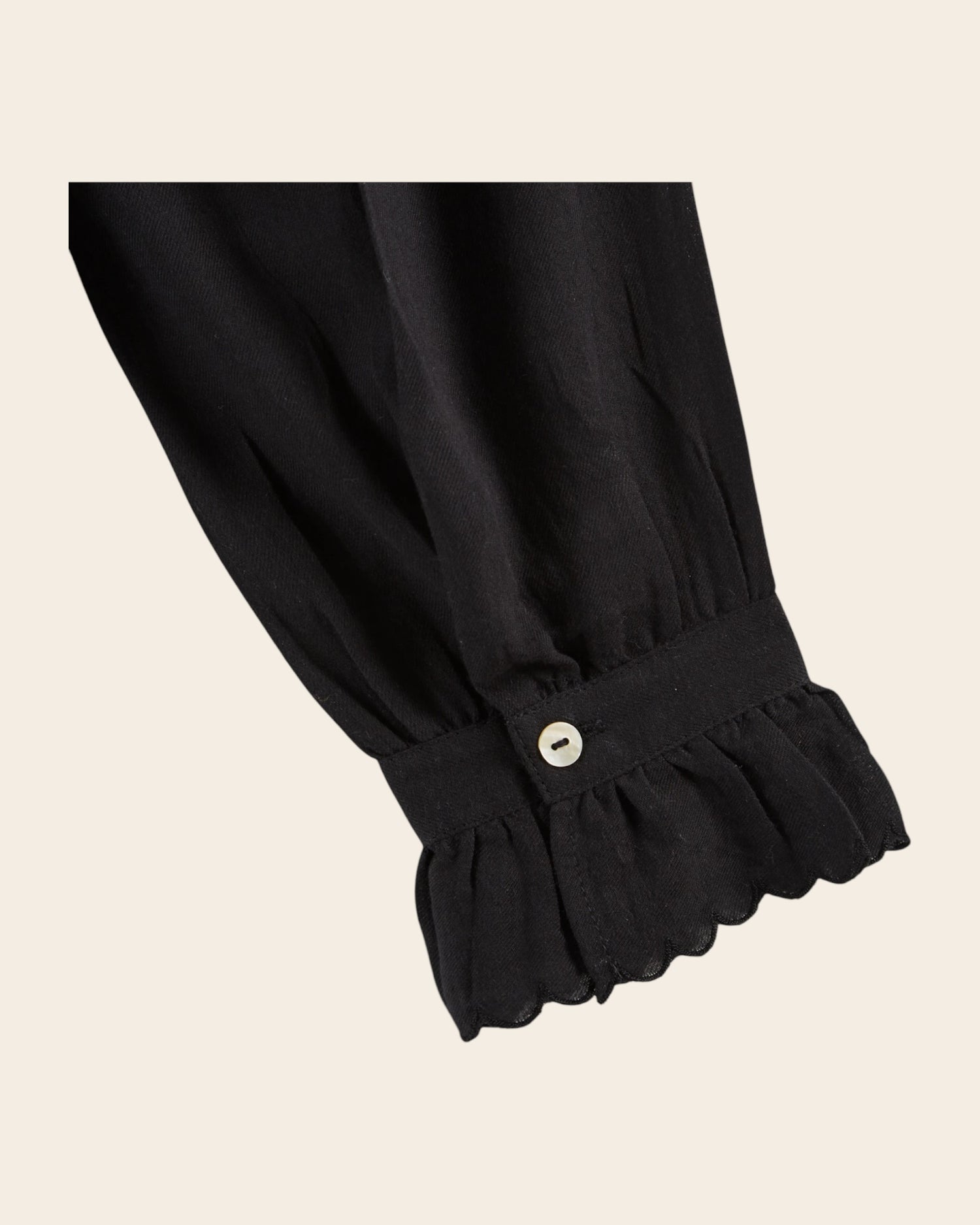 – Patte de boutonnage et boutons en nacre naturelle soulignée par des festons sur ton