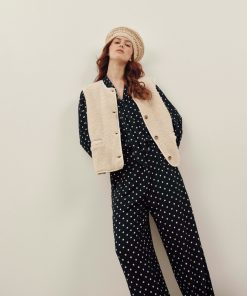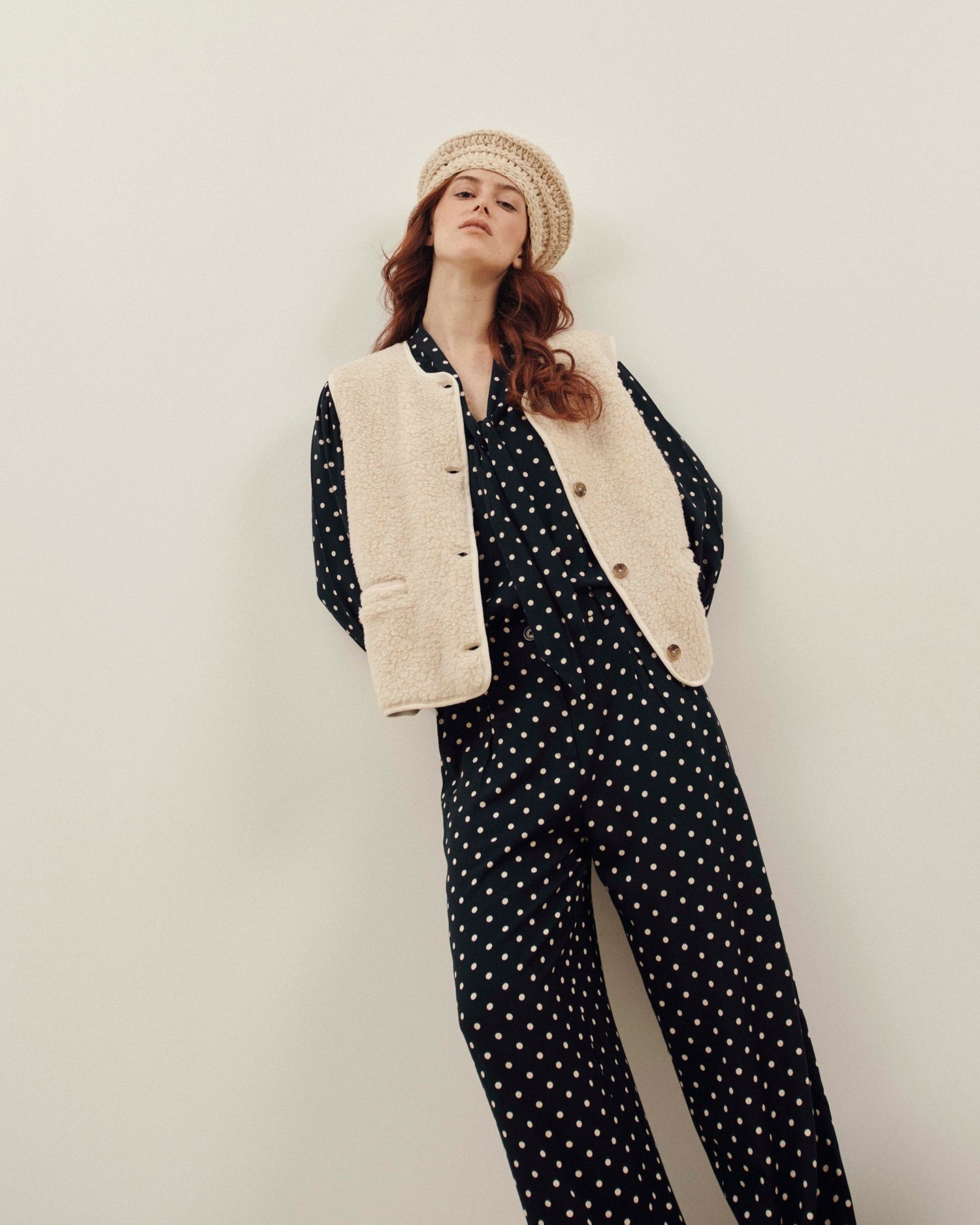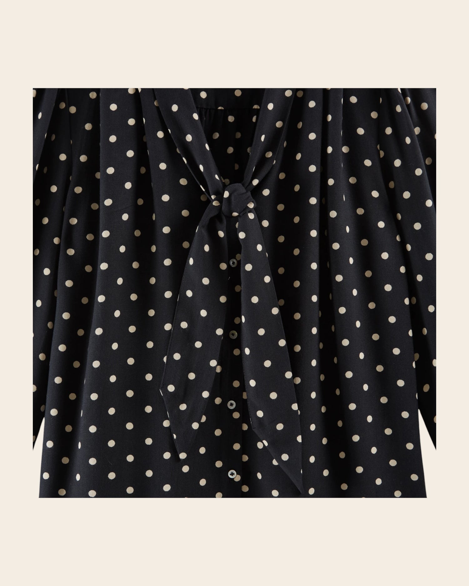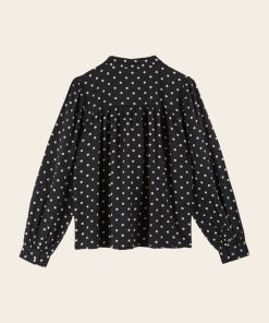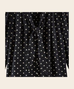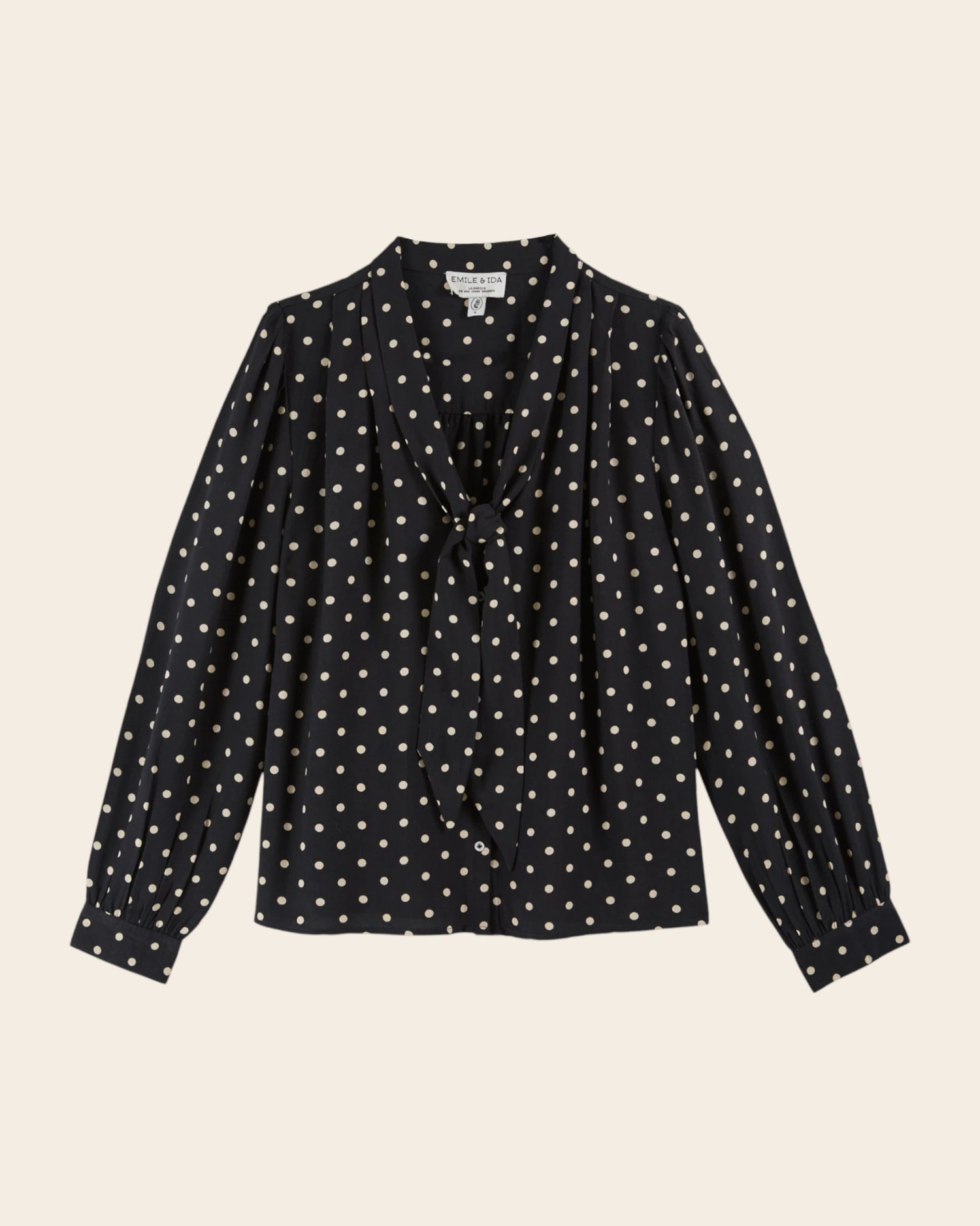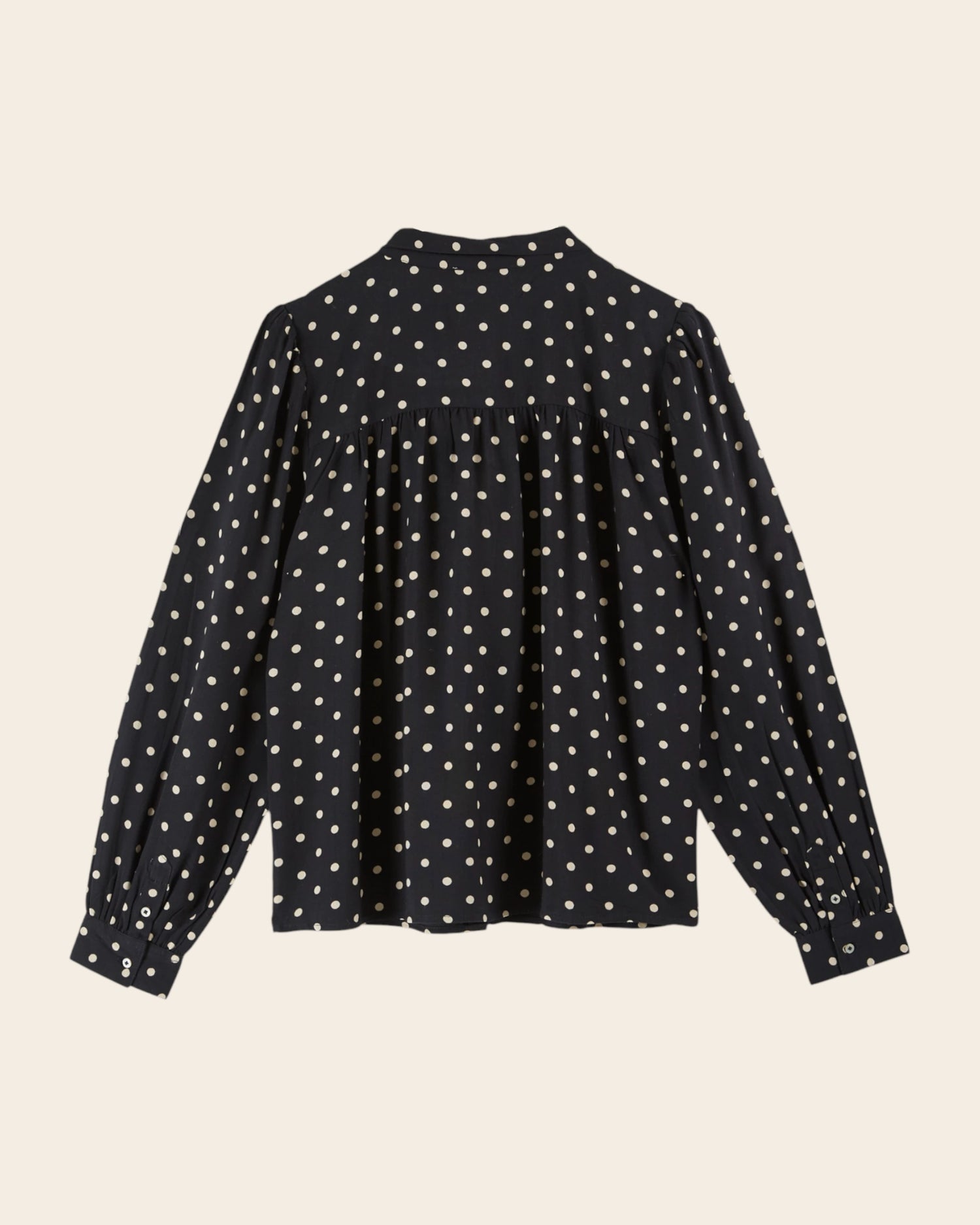 Blouse en viscose noire imprimée en all-over de points blancs.