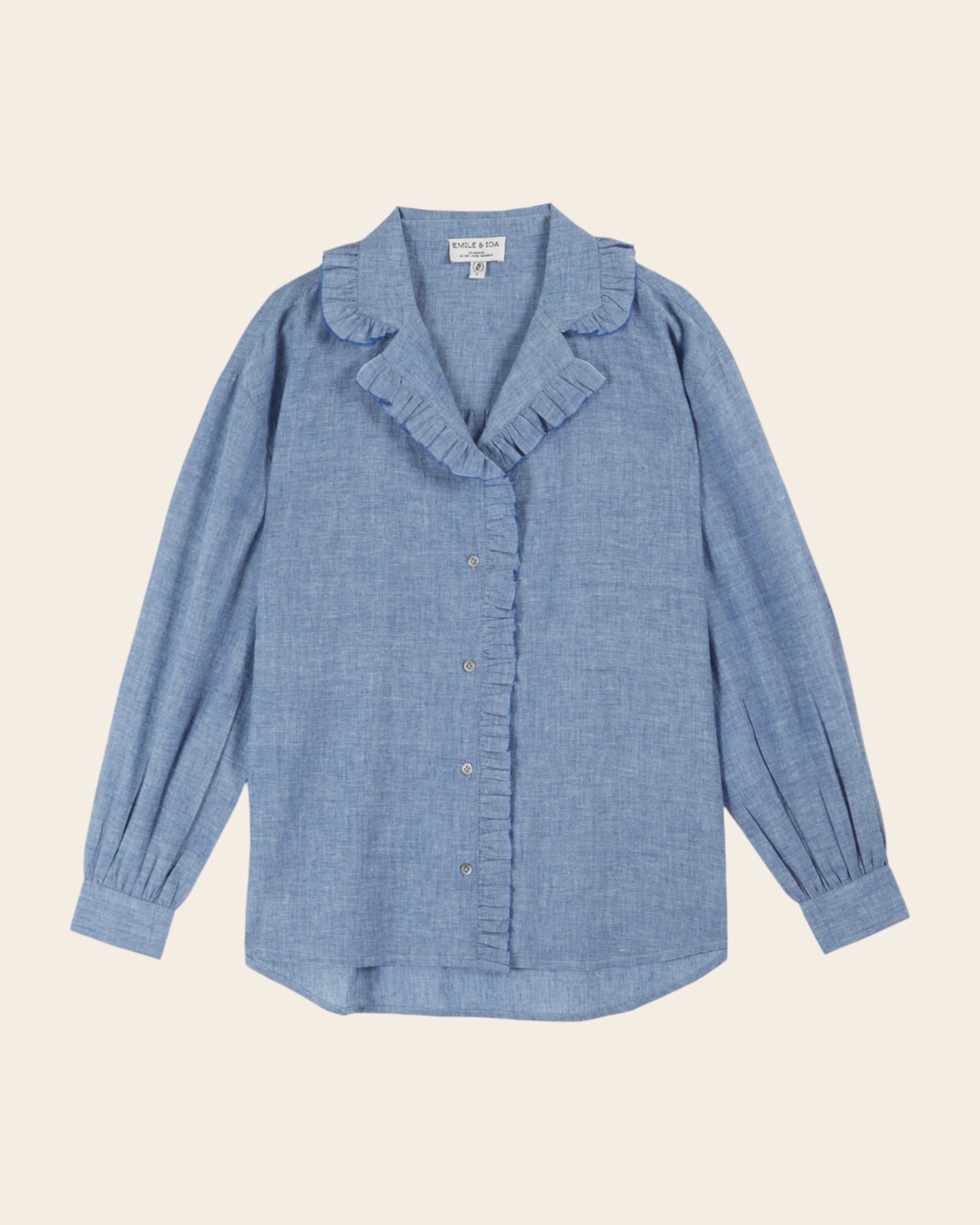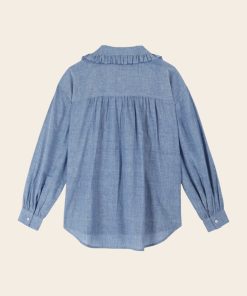 Emile et Ida Femme Men’s Blouse Volantée Chambray Bleu Chiné | Chambray