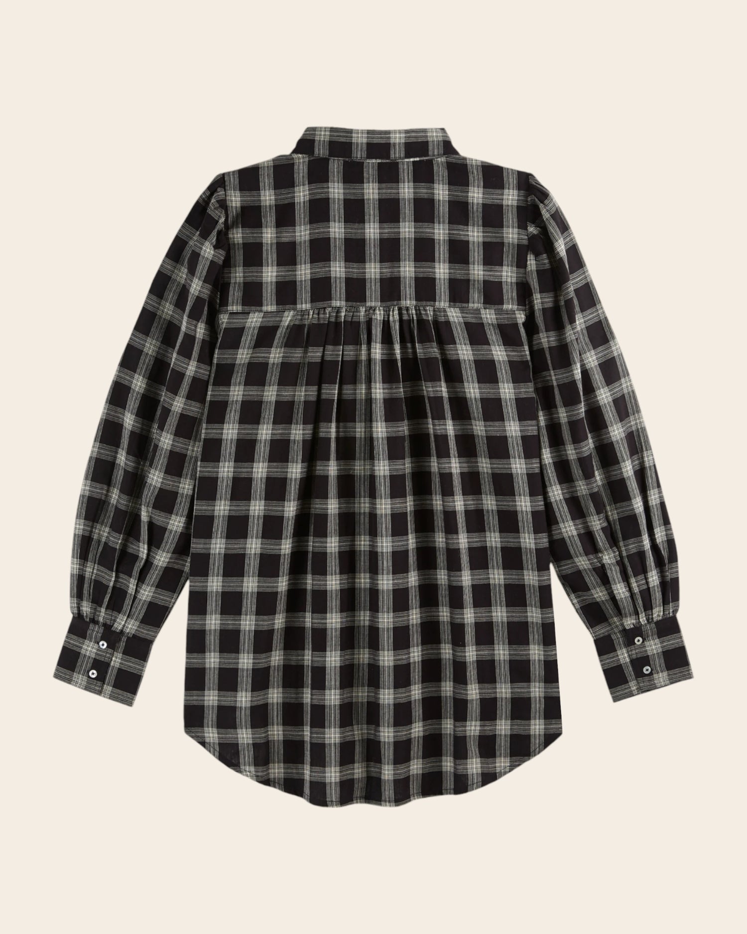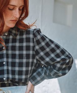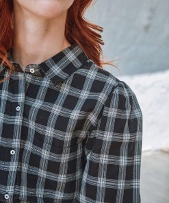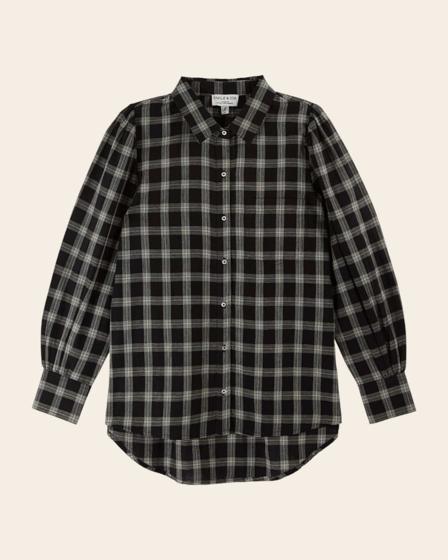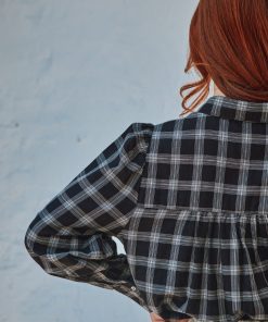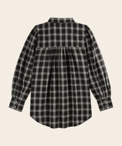 Chemise en coton à carreaux en coton noir et blanc dont la coupe over-size s’inspire des chemises d’homme.