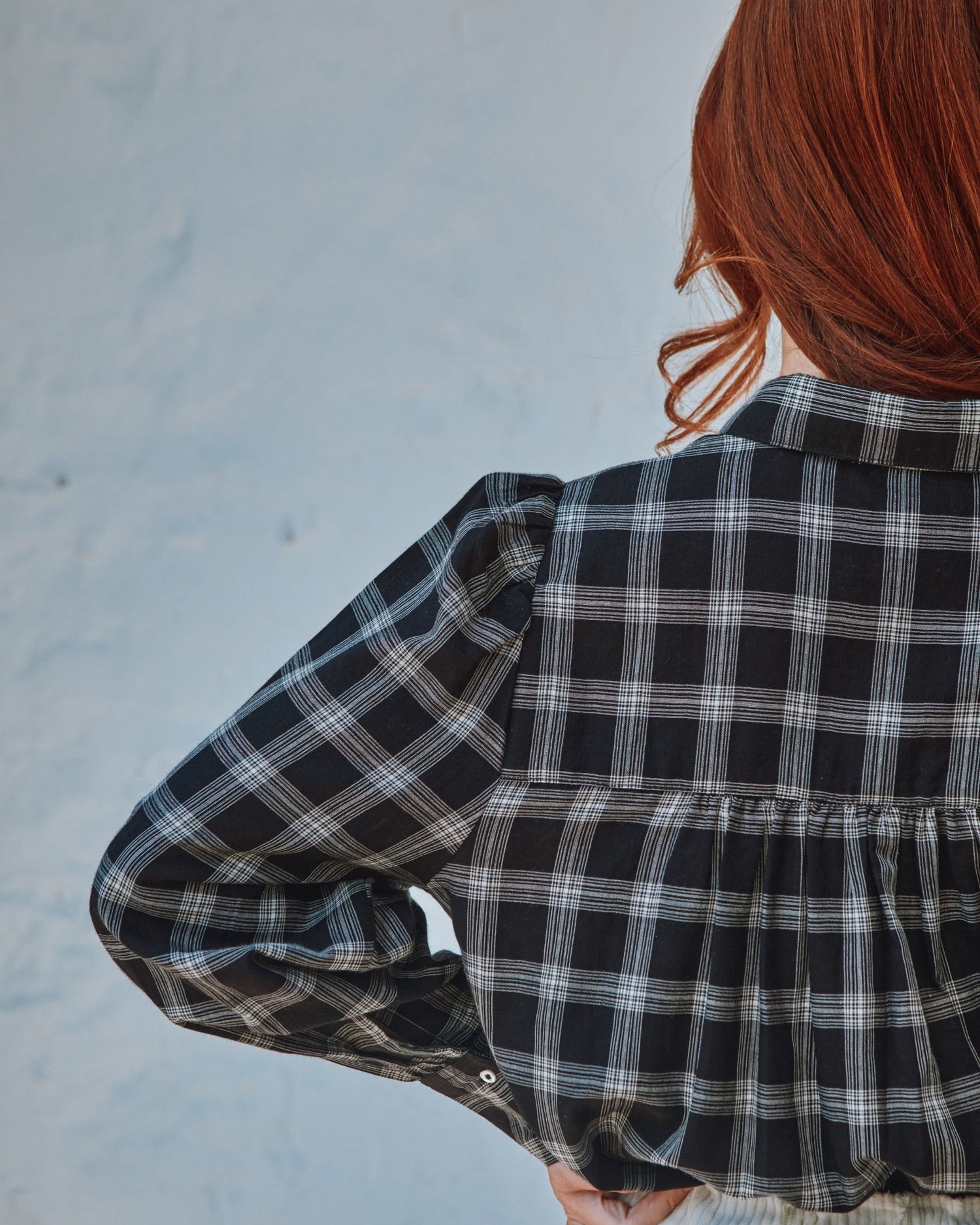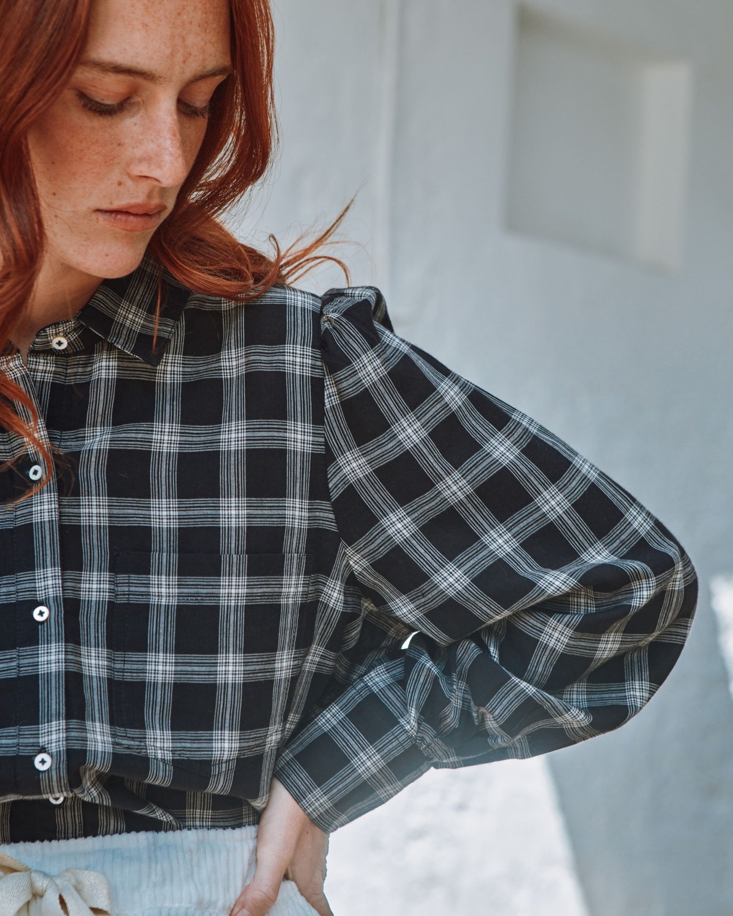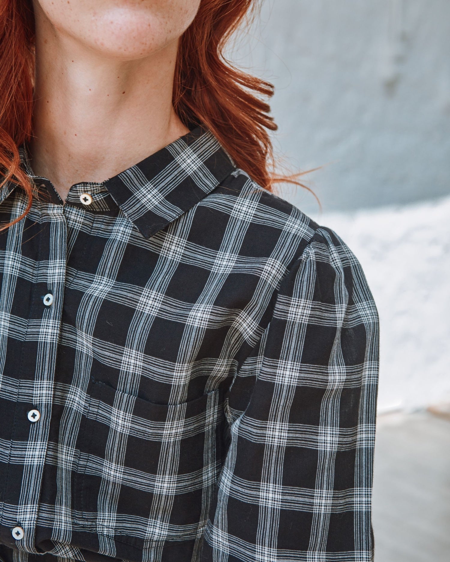 Chemise en coton à carreaux en coton noir et blanc dont la coupe over-size s’inspire des chemises d’homme.
