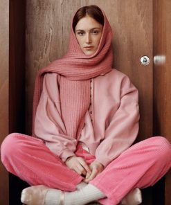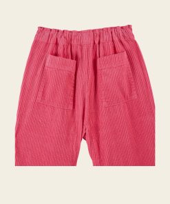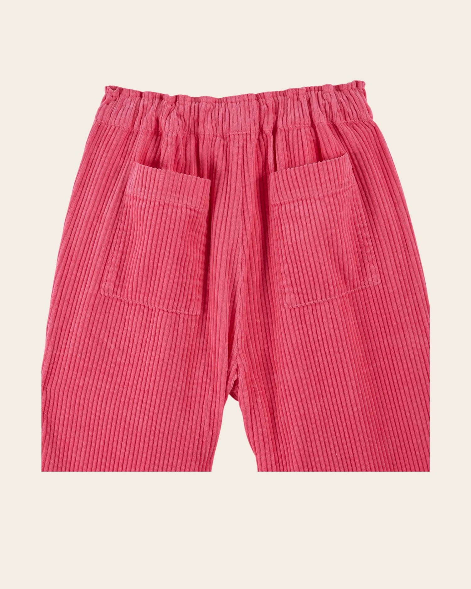 Pantalon rose bonbon en velours de coton à grosses côtes.