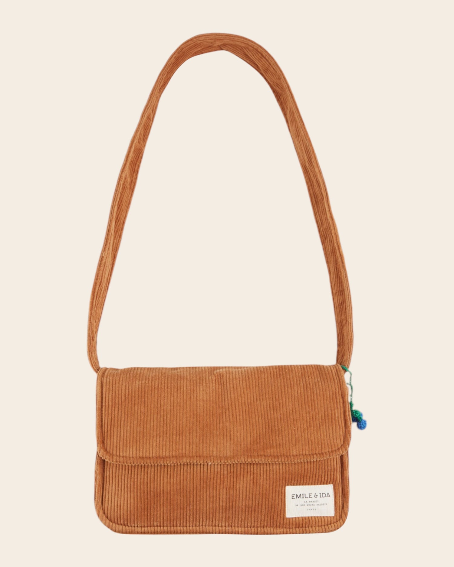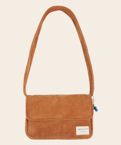 Sac à main en velours de coton à grosses côtes caramel.