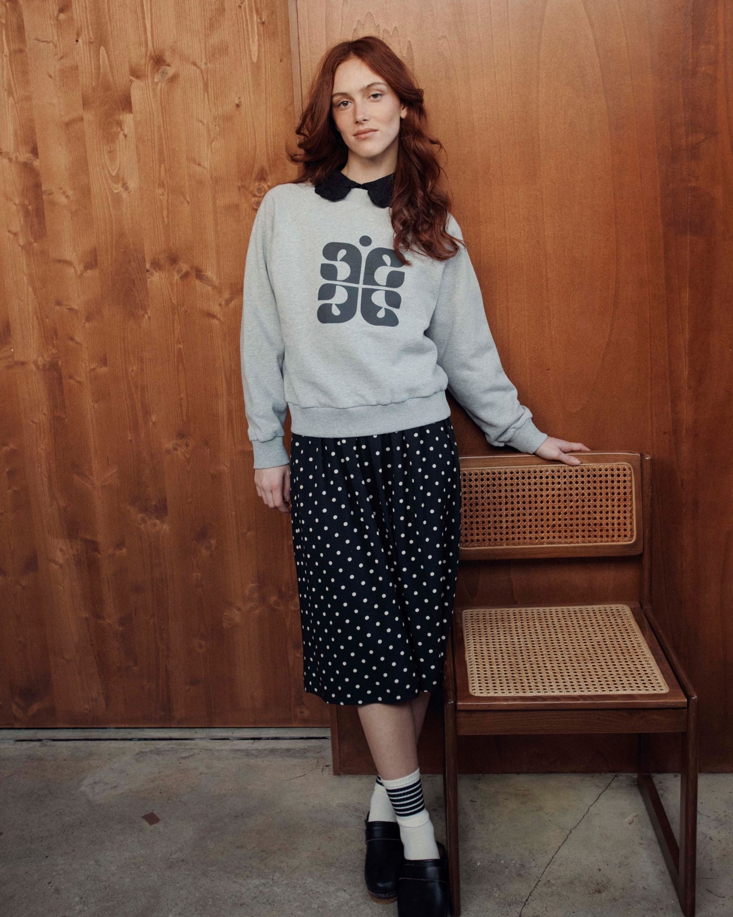 Sweatshirt en jersey de coton biologique molletonné gris imprimé du logo Emile et Ida noir.