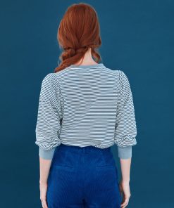 – Bord-côte à fines rayures autour de l’encolure et aux poignets