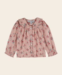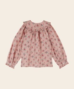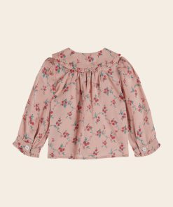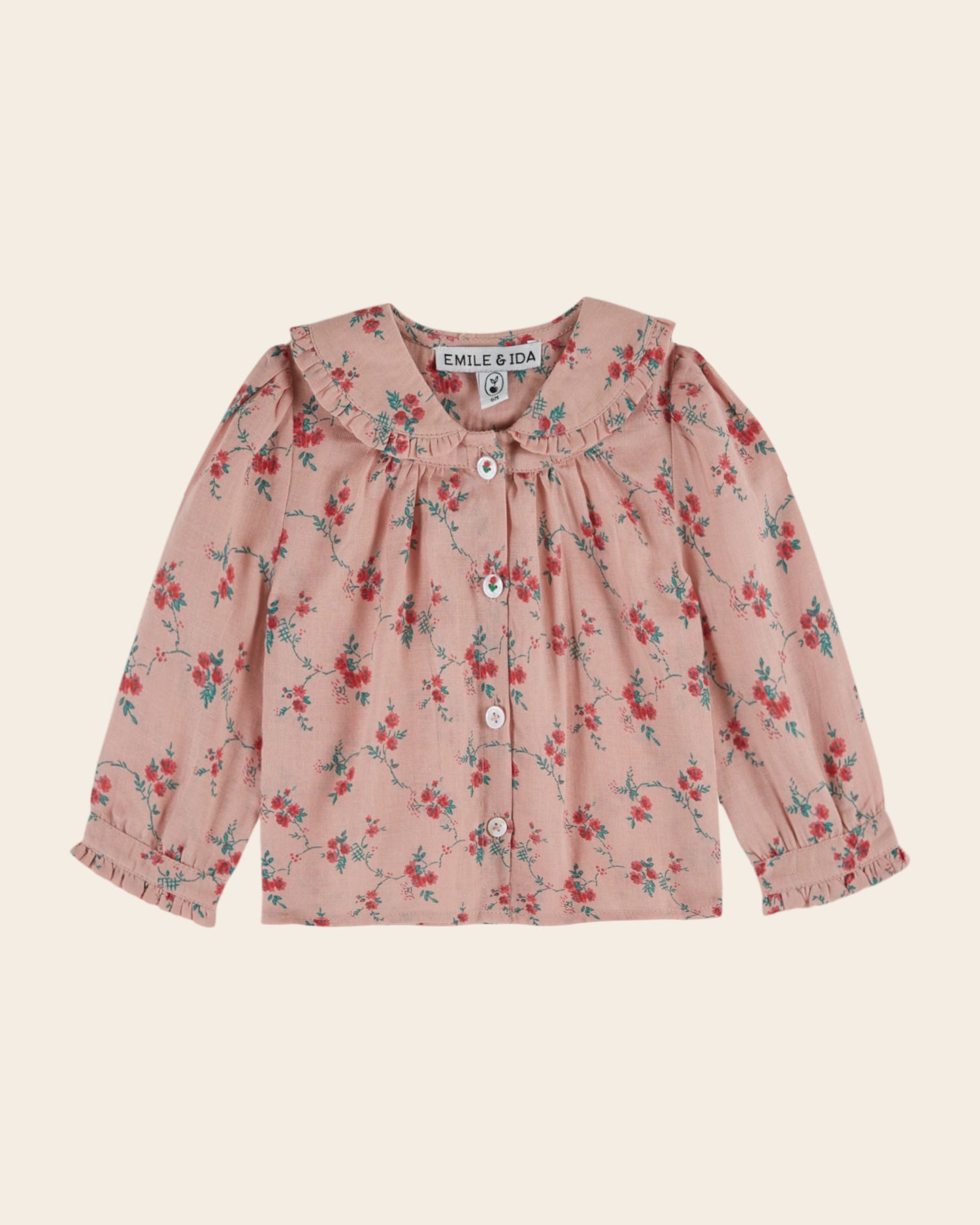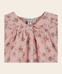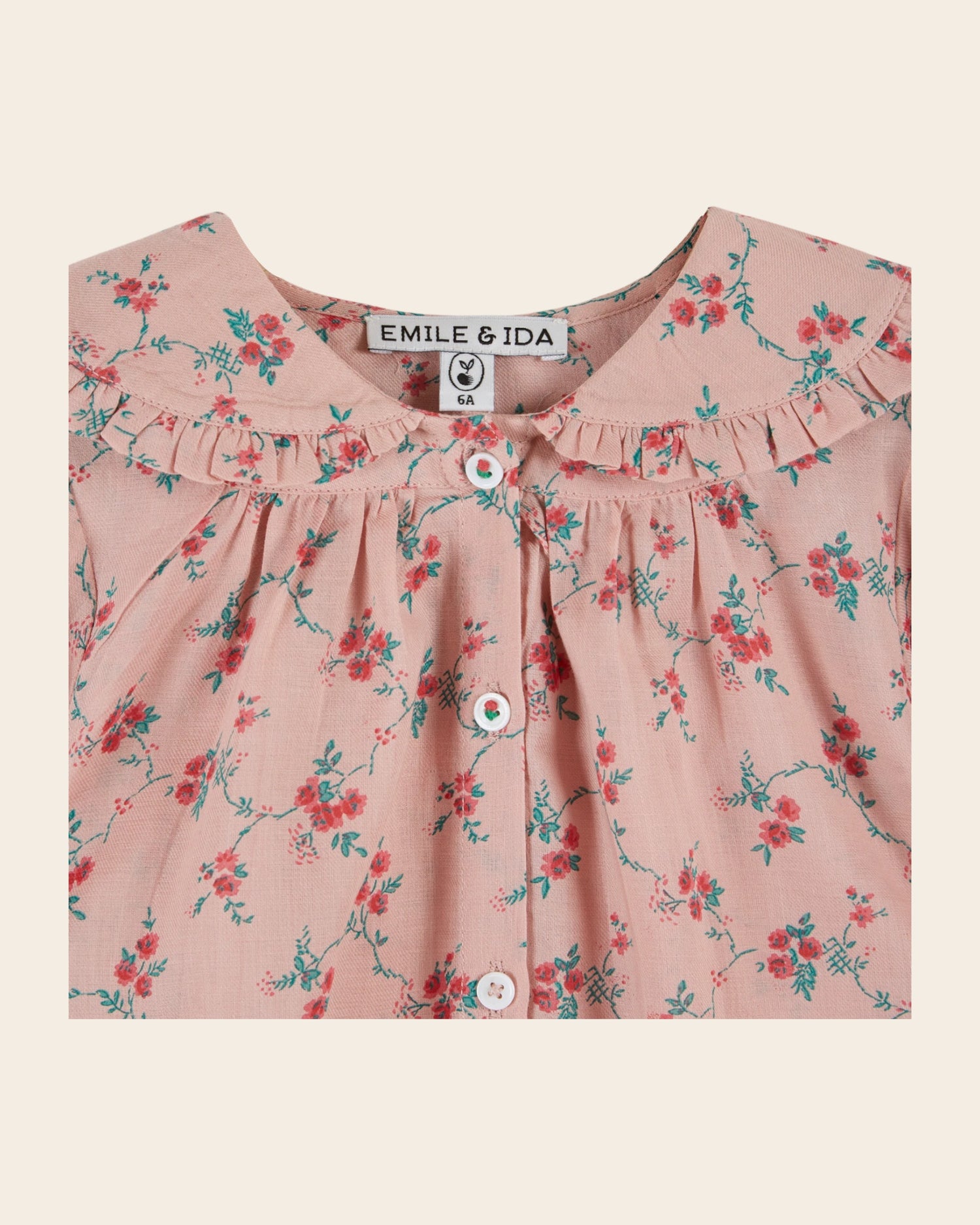 Blouse en coton orné de bouquets fleuris sur fond rose.