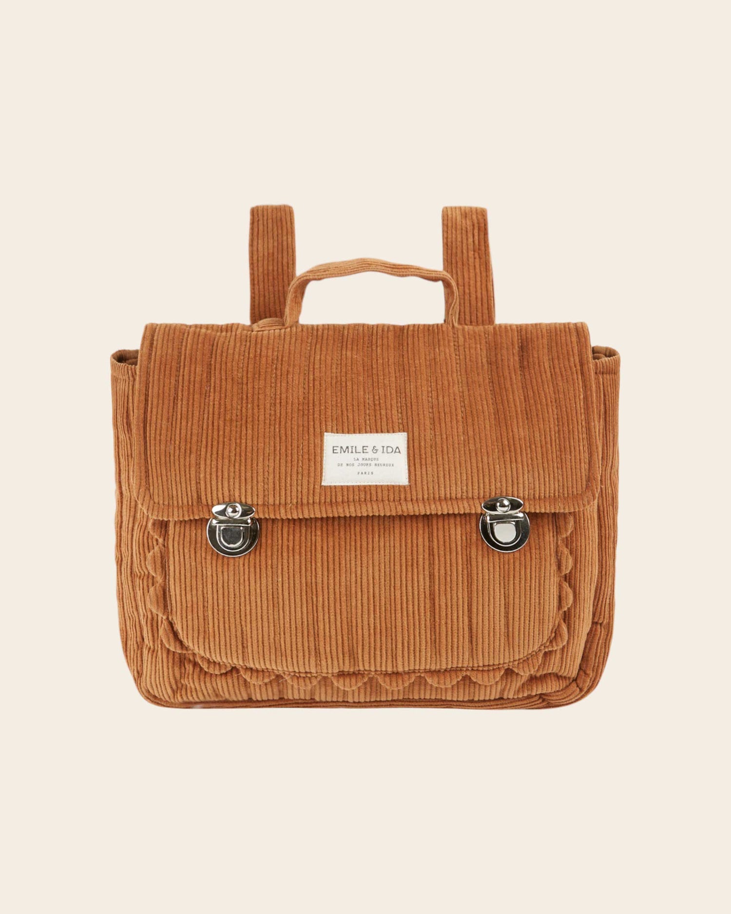 Cartable en velours cotelé et molletonné caramel.