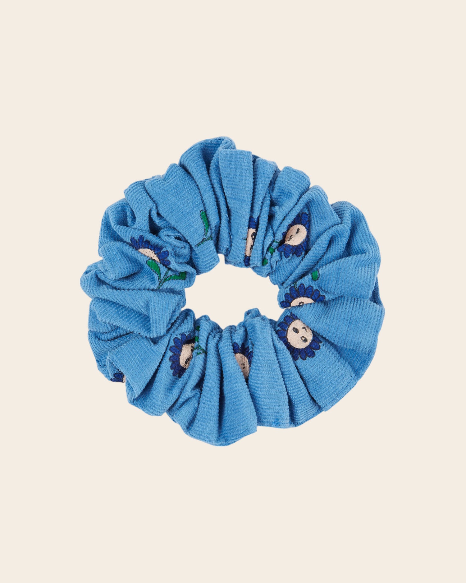 Chouchou en velours de coton bleu, parsemé de marguerites bleu foncé. Dans les cheveux, ou en bracelet autour du poignet, voilà un chouchou à assortir avec la robe ou la blouse.