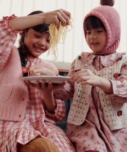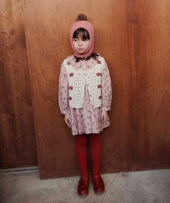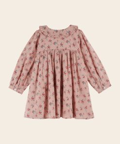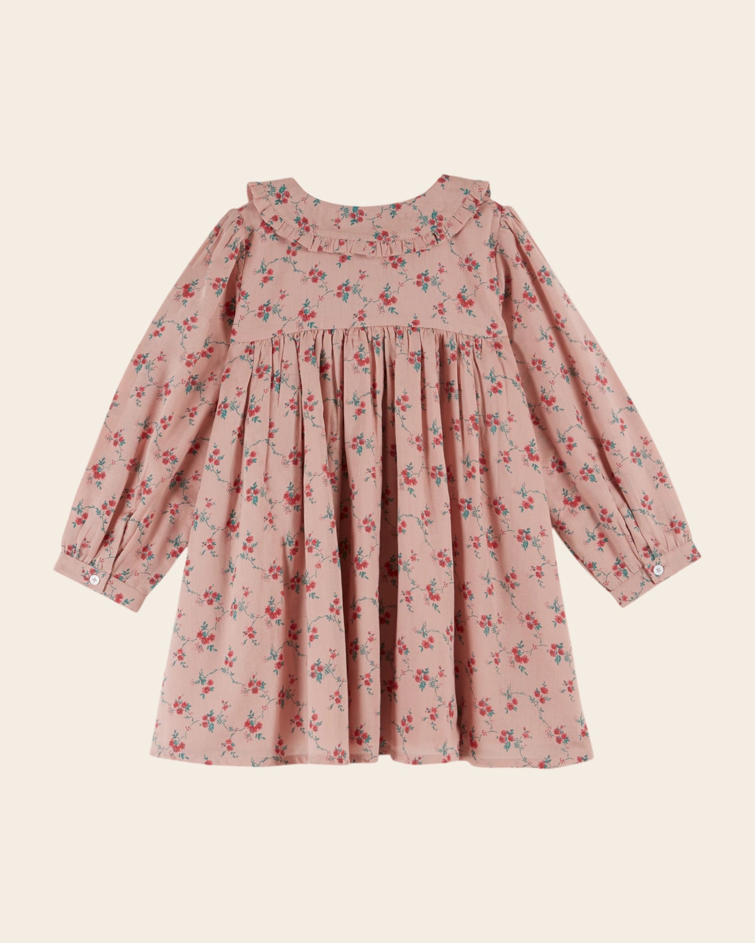 Robe en coton orné de bouquets fleuris sur fond rose.