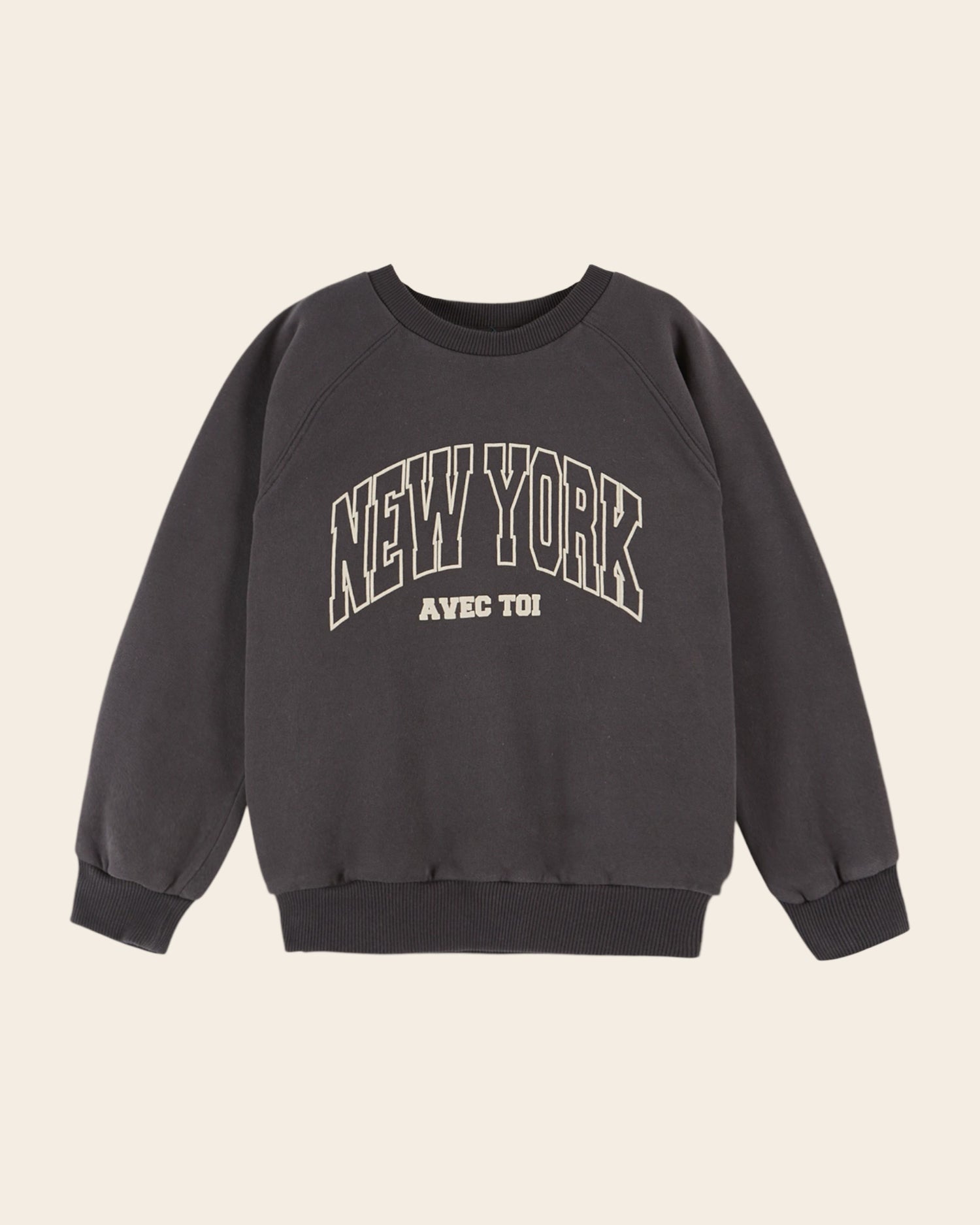 Sweatshirt en jersey de coton biologique molletonné et gratté bitume imprimé » New York avec toi » sur la poitrine.