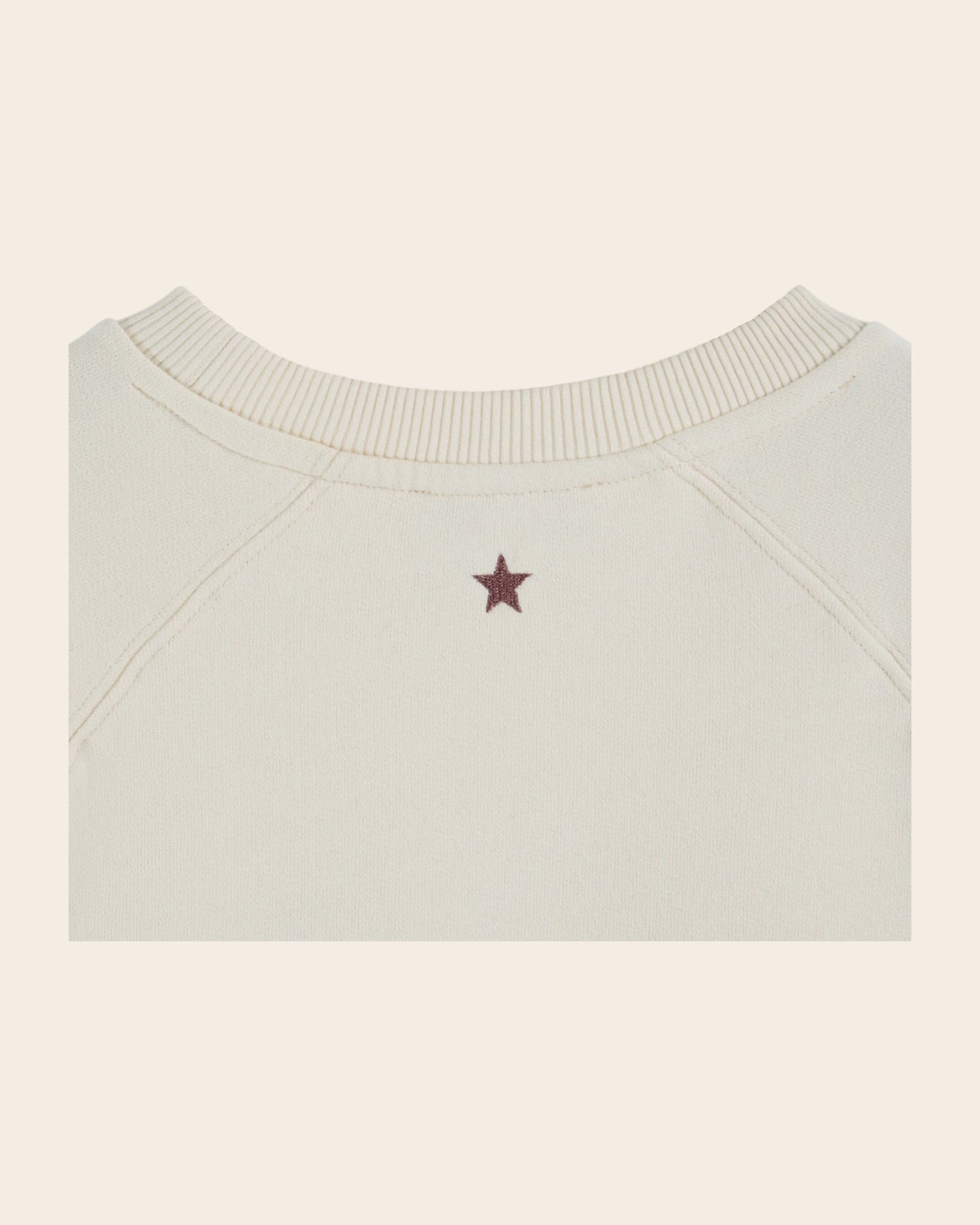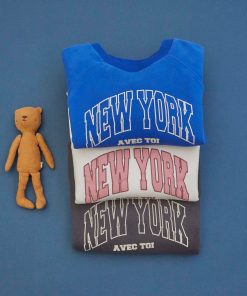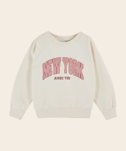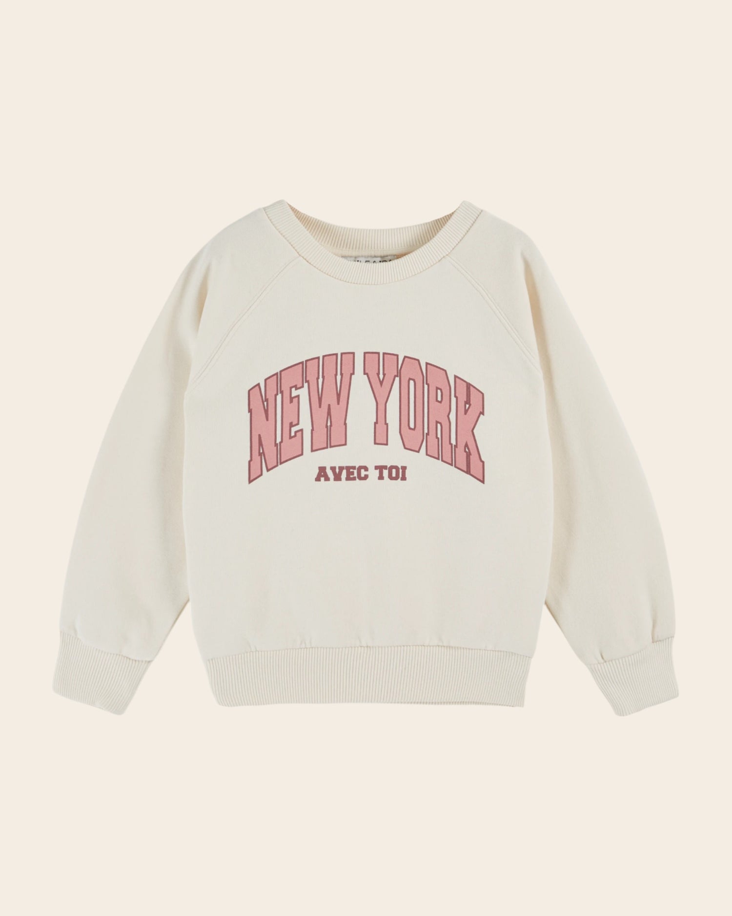 Sweatshirt en jersey de coton biologique molletonné et gratté blanc cassé imprimé » New York avec toi » sur la poitrine.