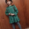 Jogger en velours ras de coton et polyester à rayures blanches sur fond vert.