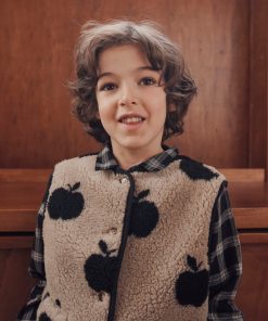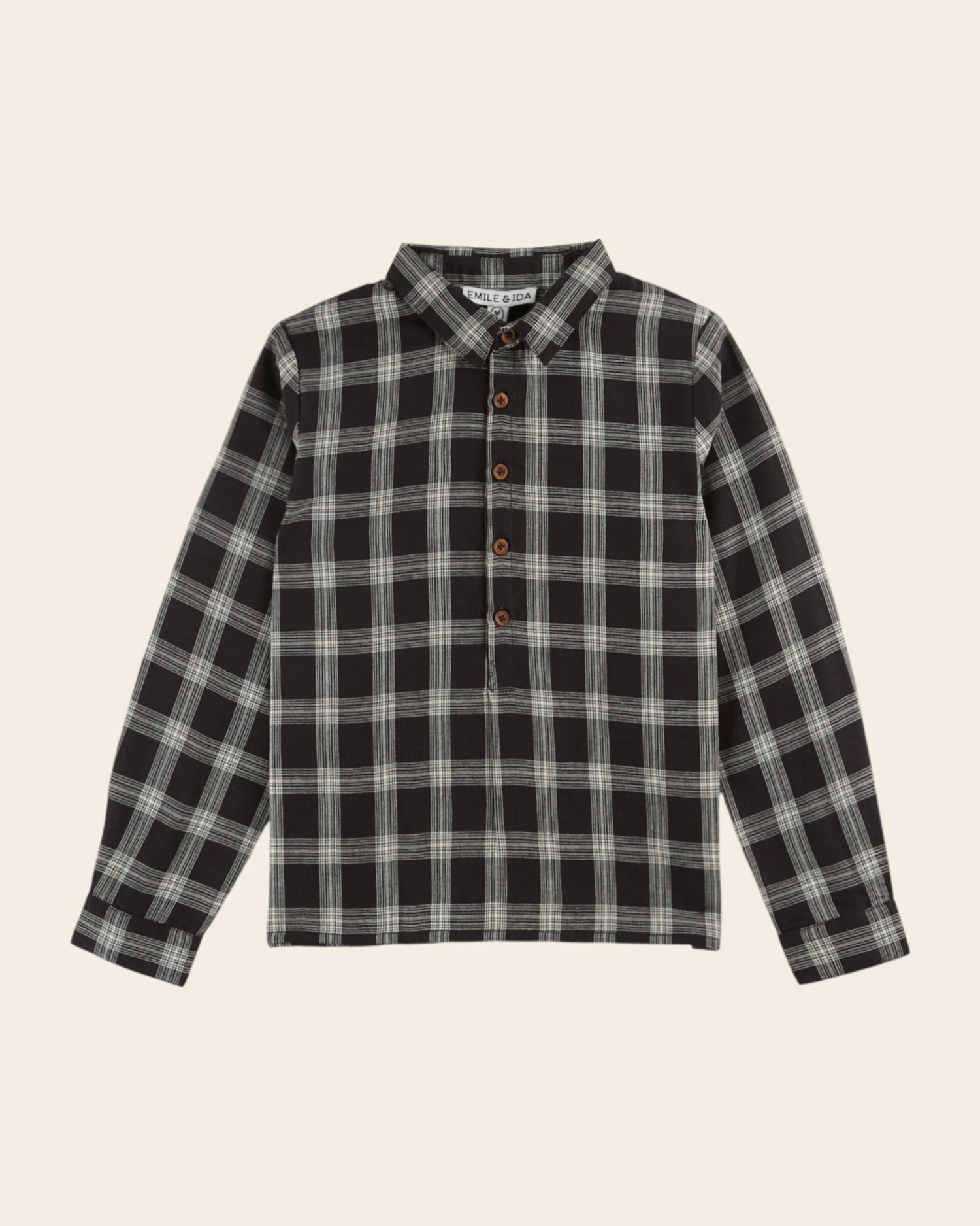 Kurta en coton noir quadrillé de lignes blanches.